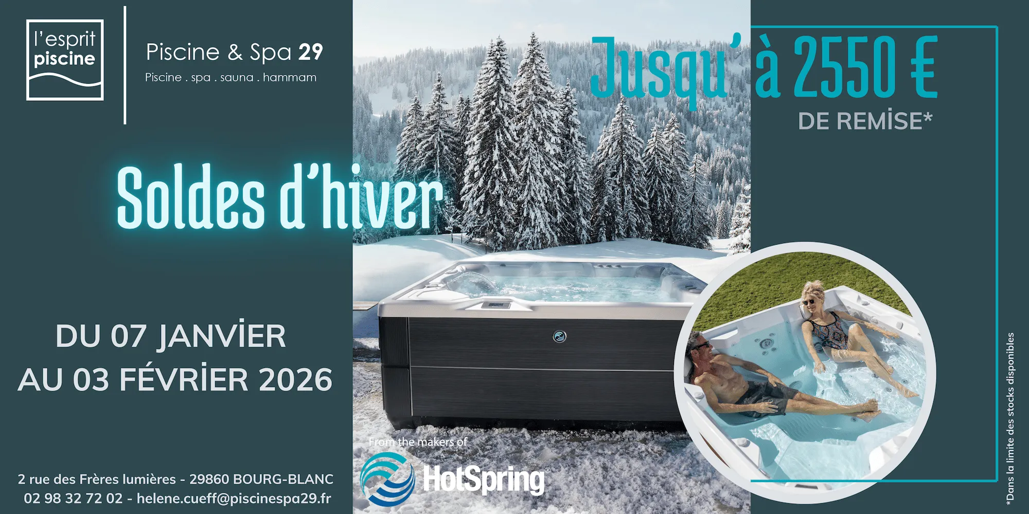 Pour le Nord Finistère (29), nous sommes le distributeur exclusif des spas Hotspring, 1ère marque mondiale de Spa.